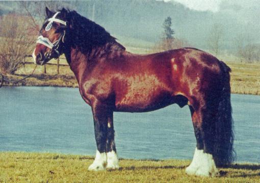 Deckhengst Ramsach, geboren 1977 (V: Ragurtha, MV: Nervus), hatte einen bedeutenden Einfluss in der Landeszucht. Insgesamt wurden elf männliche Nachkommen von ihm gekört. (Foto: Das Süddeutsche Kaltblut in Bayern von Dr. Berthold Karnbaum, Seite 41)