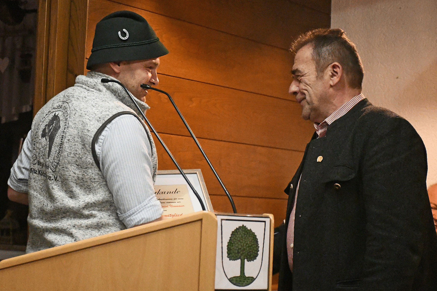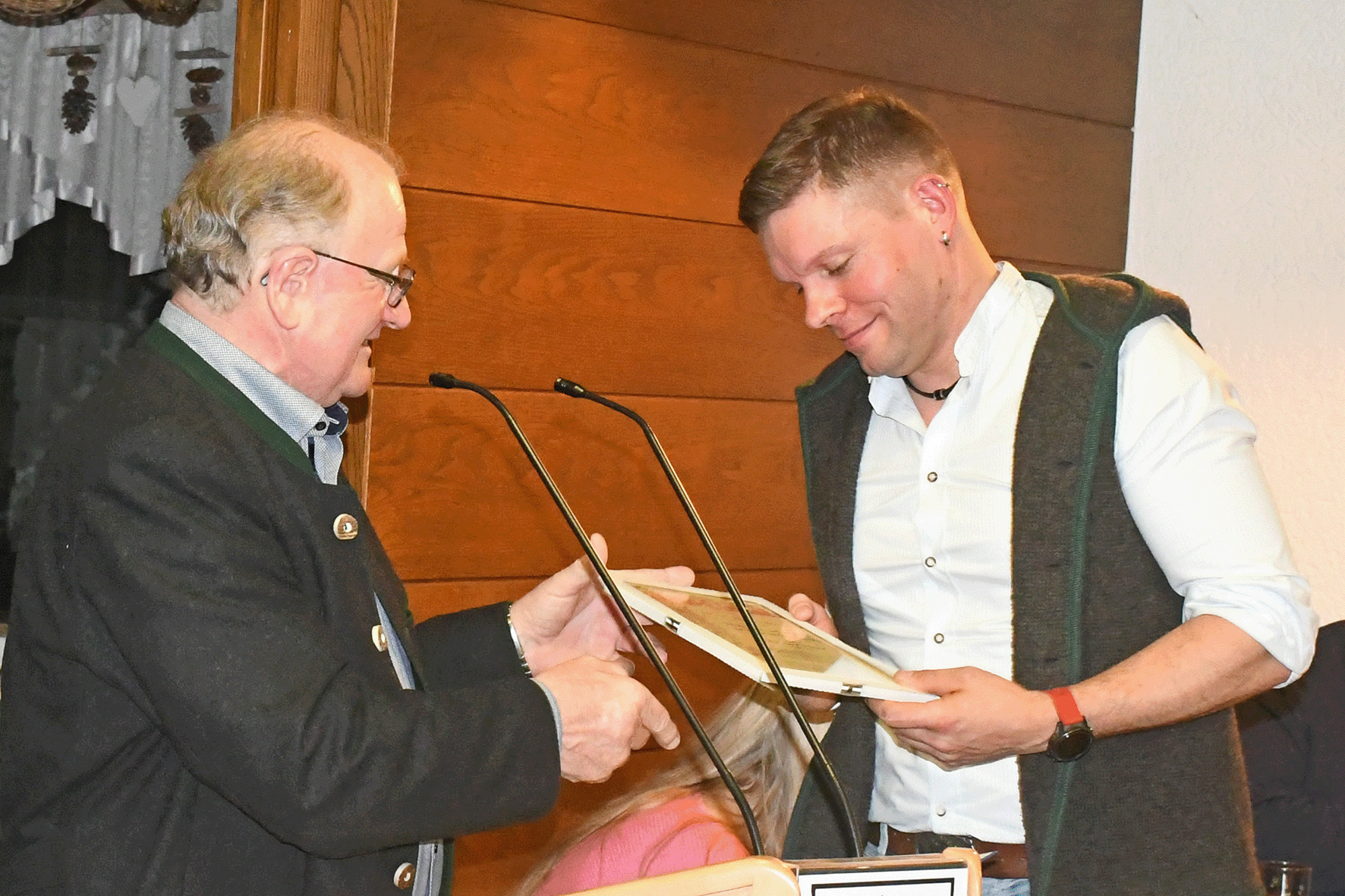 Bernhard Schmid wurde durch Hubert Berger zum Züchter des Jahres ausgezeichnet.