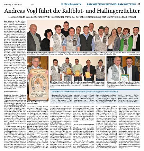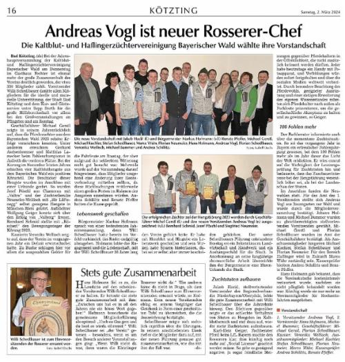 Der Vorsitzende des Pferdezuchtverbandes Niederbayern/Oberpfalz, Hubert Berger, schloss sich dieser Meinung an und appelierte erneut, unbedachte Aktionen gegenüber den Tieren in der Öffentlichkeit zu vermeiden. Er dankte dem Verein für die Durchführung der Verbandsstutenschau im vergangenen Jahr. Auf die Anfrage, ob das Fohlenchampionat nicht von Aufroth nach Bad Kötzting verlegt werden könne, verwies er auf die zahlreichen Haflingerzüchter aus dem unteren Bayerischen Wald und bat, doch bitte weiterhin die Veranstaltung in Aufroth zahlreich zu beschicken.