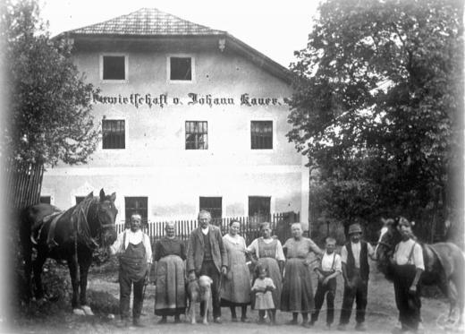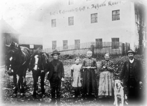 Zwei alte Aufnahmen von der Familie Kauer in Kammern, bekannt als "Kamminger Wirt". Das obere Foto dürfte um einiges früher entstanden sein. Beide zeigen ganz klar den Stolz auf die Pferde, die mit auf das Familienfoto dürfen. (Fotos: Stadtarchiv Bad Kötzting, Arbeitskreis Heimatforschung)
