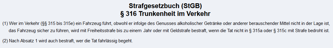 als 1,1 Promille Alkohol im Blut haben. Er gilt dann als absolut fahruntüchtig